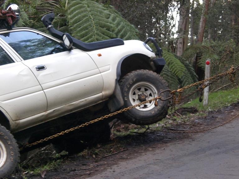 Thats what we think too! I should have mentioned that my bro tried to snatch/tow him out... hes disco facing the otherside. What ended up happeining was he smoked up the disco tyres (bugger didnt get any photos) and hes father in law (very brave man, nothing scares him) was in the toyo. Unfortunately, hes toyo was also draggin my brother back... so potentially they could of both gone over if they didnt stop!