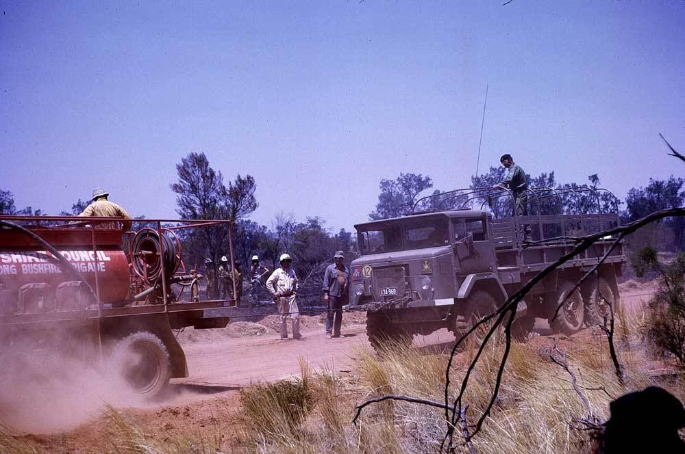 We were doing a huge back burn - and can remember we had brought over 20-30 appliances over from SA (fairly flash fire appliances in there days).......well getting back to the story half way along the back burn we came across an old ex army 6x6 fire truck (it even had the old lay done front windscreen) - and we were shocked as it still was an active fire appliance.
