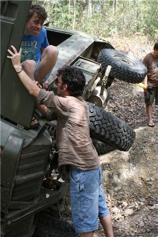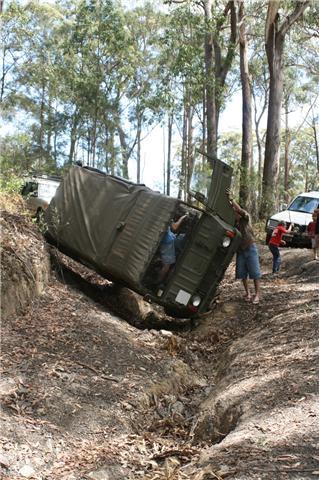 Yes we were very glad that bank was there, specially looking back on the Pictures. We had front and rear locked at the time and the naturally caused the front to take us slightly off line causeing the front right to drop in to a massive hole which was the end of us. The rear left was already sitting pretty high in the air prior to dropping in so it didnt take much encouragement to go over.