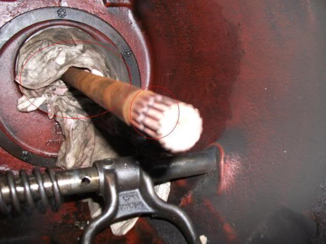 The 5000 is in a bad way, splines are all flogged out The main shaft is out, and real bad. The shaft in view is the PTO and hydrolic pump drive and is also stuffed. Big job now as have to split the main box off the rear end to get the bugger out. They are a real sod to refit.