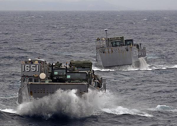 PHILIPPINE SEA (Jan. 25, 2010) Two landing craft utility vehicles assigned to Assault Craft Unit (ACU) 1 approach the well deck of the forward-deployed amphibious assault ship USS Essex (LHD 2). ACU-1 embarked aboard Essex for the ship's annual spring patrol throughout the western Pacific region.