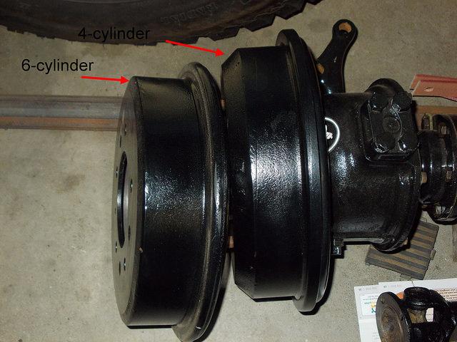 Front brake drum differences 6-cyl & 4-cyl LWB are shown below.