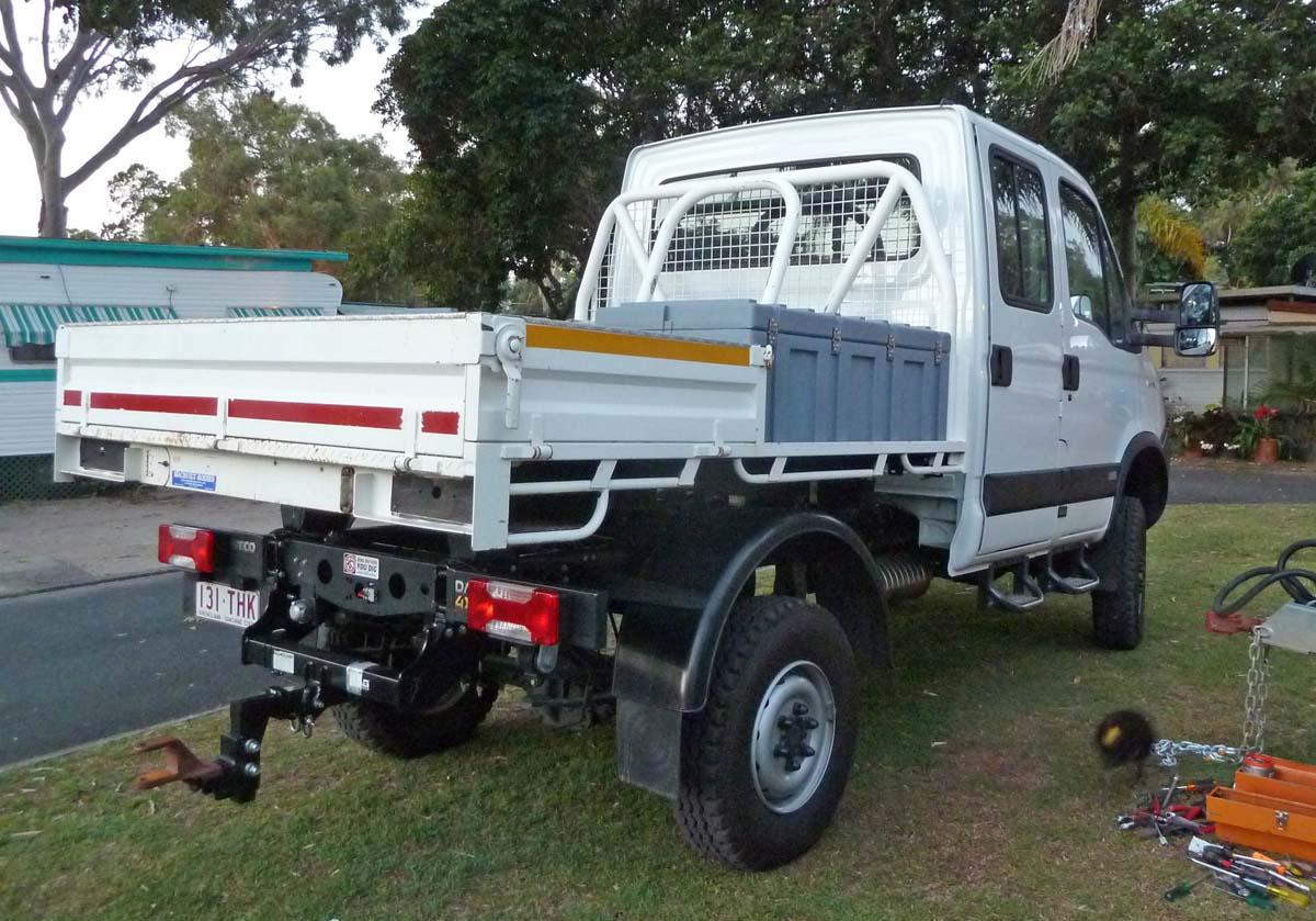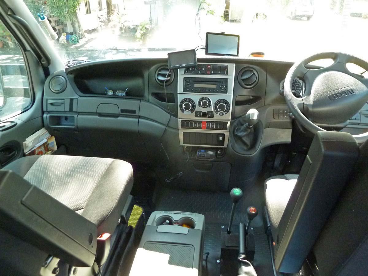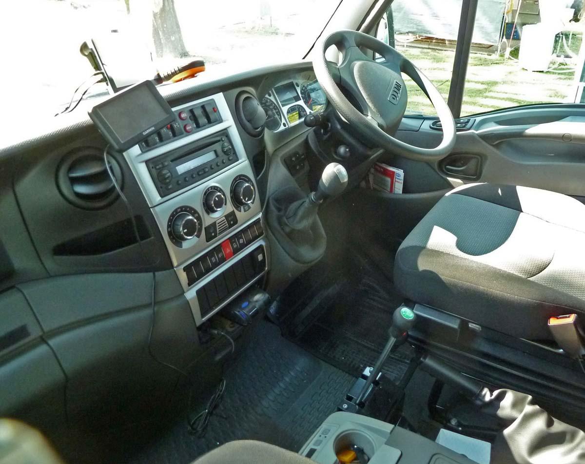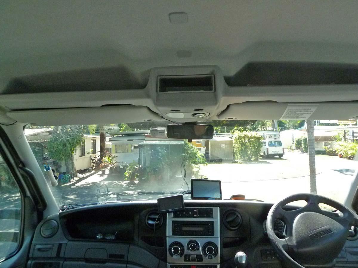 Inside, Waeco CDF11 fridge on floor btwn seats, the things sticking up on the sides of the seats are airline style fold down armrests. big monitor is my Hema maps and reversing camera (aimed at the tow hitch)