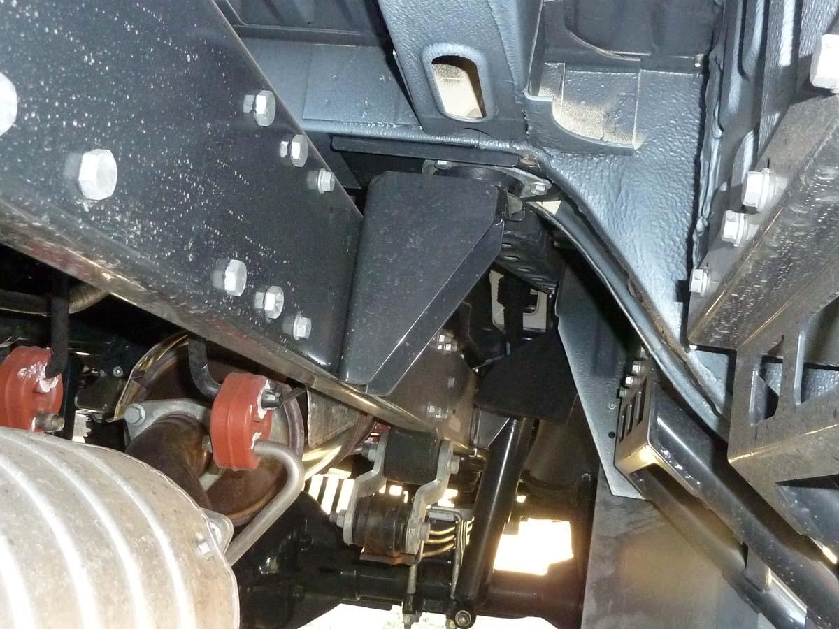 looking under the cab from infront of the right rear wheel, the cab had some good rubber / spring mounts to account for chassis flex.