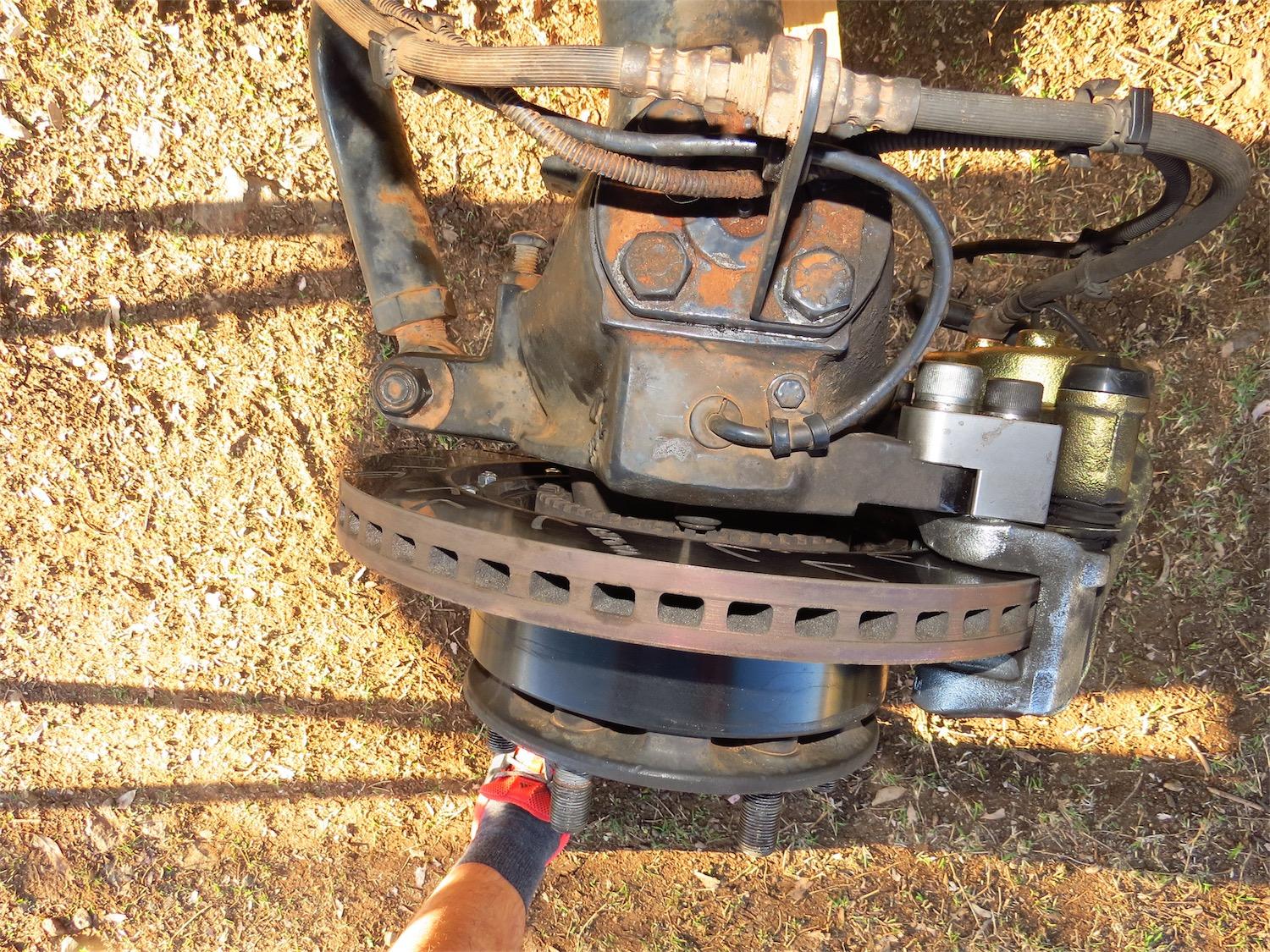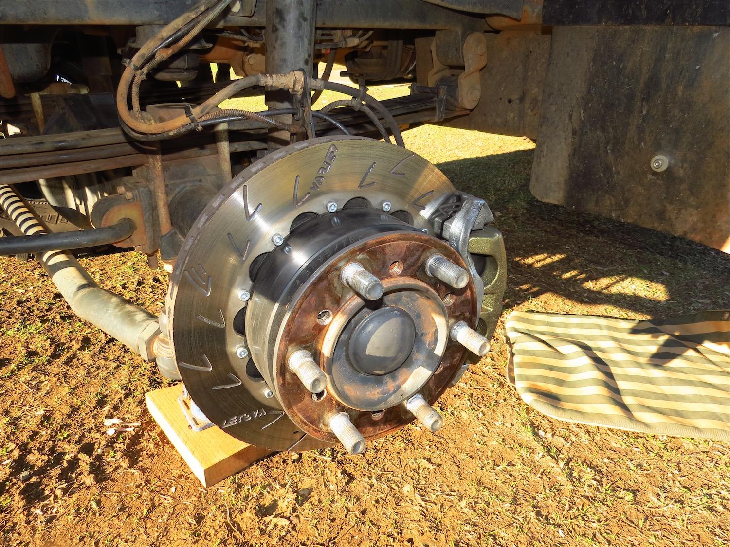 Here we have the BHSS 350mm x 28mm Vented rotor, fitted to my truck. The rotor started life as a Mercedes Rotor, as you can see you can replace the rotor simply by removing the wheel and caliper.