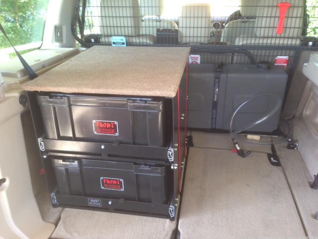 Finally got my drawers, poly water tank (after the fiasco with FlexiTank, still awaiting a refund), FrontRunner Slimline roof rack and 55L poly fuel tank for extra diesel. Decided I didn't want to fit one under the car, as it will make it hard to return it to stock for resale.