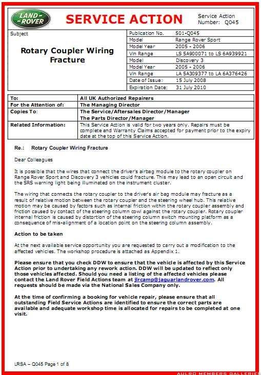 I would be trying to get your money back off LR. There was a TSB for the rotary coupler as it contols the airbag. It is a safety issue.