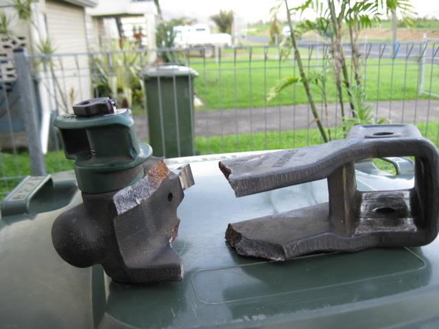 I am making enquiries as to whether anyone else has had this problem. My 07 Disco 3 v6 petrol came with a towbar, tongue and ball all neatly packaged in the passenger side rear. Up until June last year that is where it stayed until numerous trips to specialists in Brisbane and the overinflated motel prices influenced us into buying our 19ft 6in caravan which weighs 2.5t fully laden, food, clothes, water etc whilst the tow bar is rated at 3.5t. As we have only ever done highway driving (though the past couple of years the Bruce Highway is more of a goat track) and have no dramas with towing our van until last month. We had started for home and pulled up to refuel at BP Caboolture North we heard a clunk but on inspection could not find the cause, however as we reversed away from the bowsers and just put the car into drive the tow bar snapped clean in two just behind the key lock leaving the van attached only by its chains and wiring harness. Very scary when you think what might of happened if it let go on the highway. Has anyone had this happen to them? Why do they make such an item from Cast, shouldn't it be high tensile steel?![]()