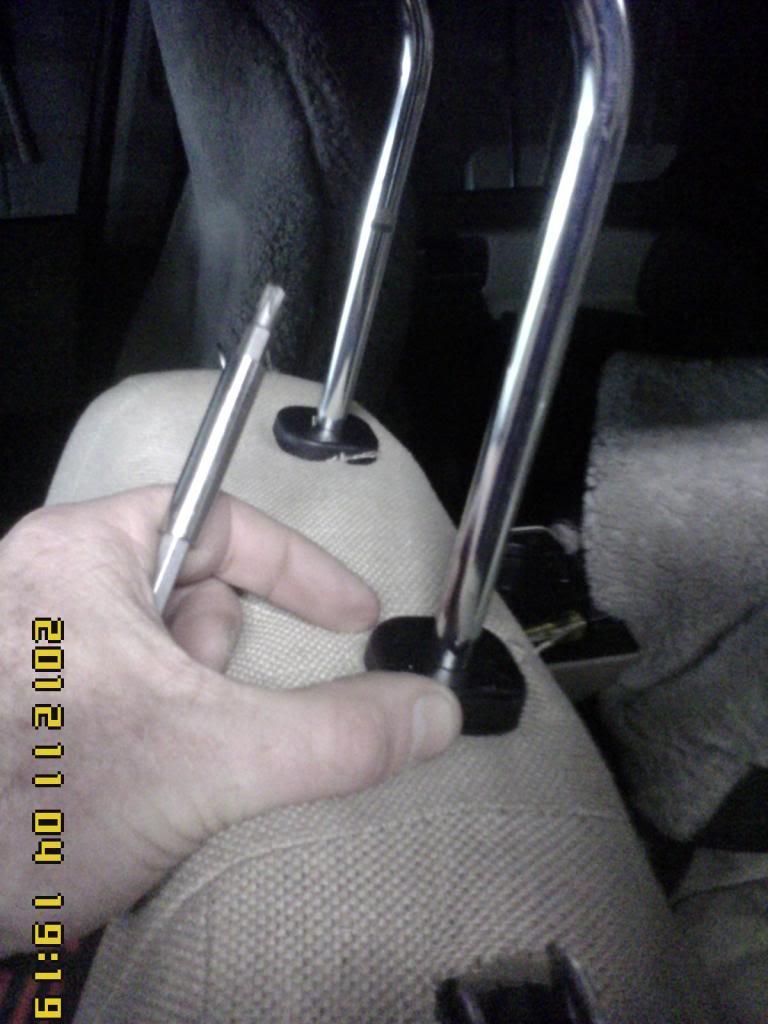 I straightened the angle of the rods in my vice. This can be done with out removing the head rest cover and foam.