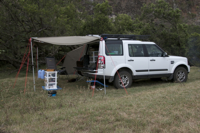 Couple of pics of my foxwing from last weekend.Hope they help.We had two inches of rain one morning during a storm,and it was great.Some water does splash off the roof of the car though,but not a real problem,we just move stuff around & head for the tent