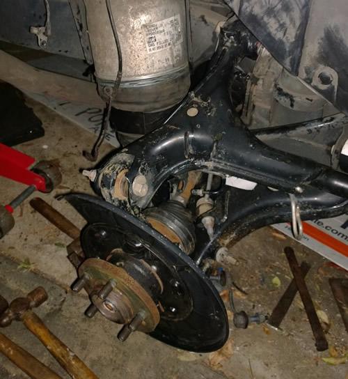 Further still. The stabiliser bar installed. Everything is now fitted and torqued up. Now waiting for the rotor and caliper. I need the right tool to do this job.