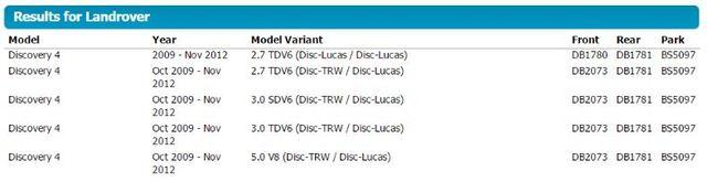 2.7 litre TDV6 diesel D4 (such as mine) uses same pads as above.