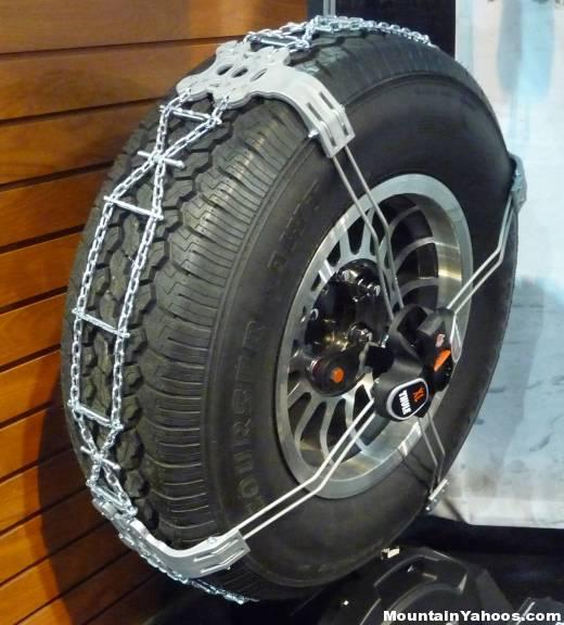The old lay flat chains were similar just with link chain instead of the wire band on the inside. Driving onto them for install never worked well. The best way was the same as the new ones, drape them over the tyre, hook around the bottom, tension, drive forward a few turns and retension.