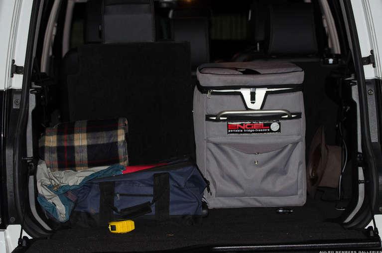 I was measuring mine earlier today.My 80Lt engel will fit lengthways between the 5th row and rear door.850mm is about the length,could even go close to 900mm.