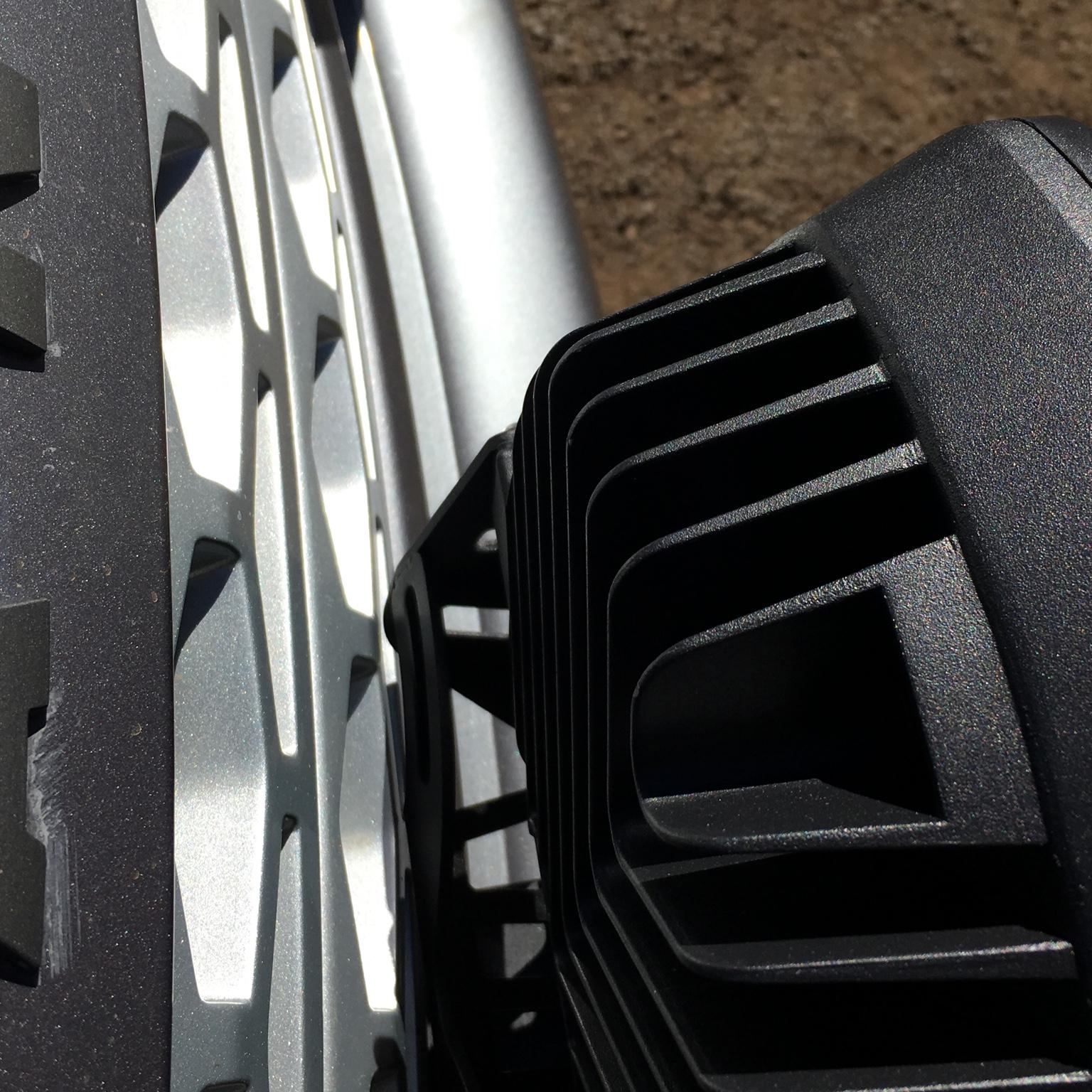 I am thinking 2 narva light stabiliser bars $16 each. From top of light (cooling fin) to angled frame in front of radiator.