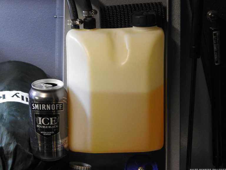 This gives you an idea on the size of the diesel tank (the can is just for comparison!) ... I filled this to the brim when we picked up the Kamper Dec' last year and that's all the fuel we've used for hot water in the kitchen & showers for 11 nights camping and a 2.5Hr test run of the tent heater 2 weeks ago. Very economical on fuel useage !!