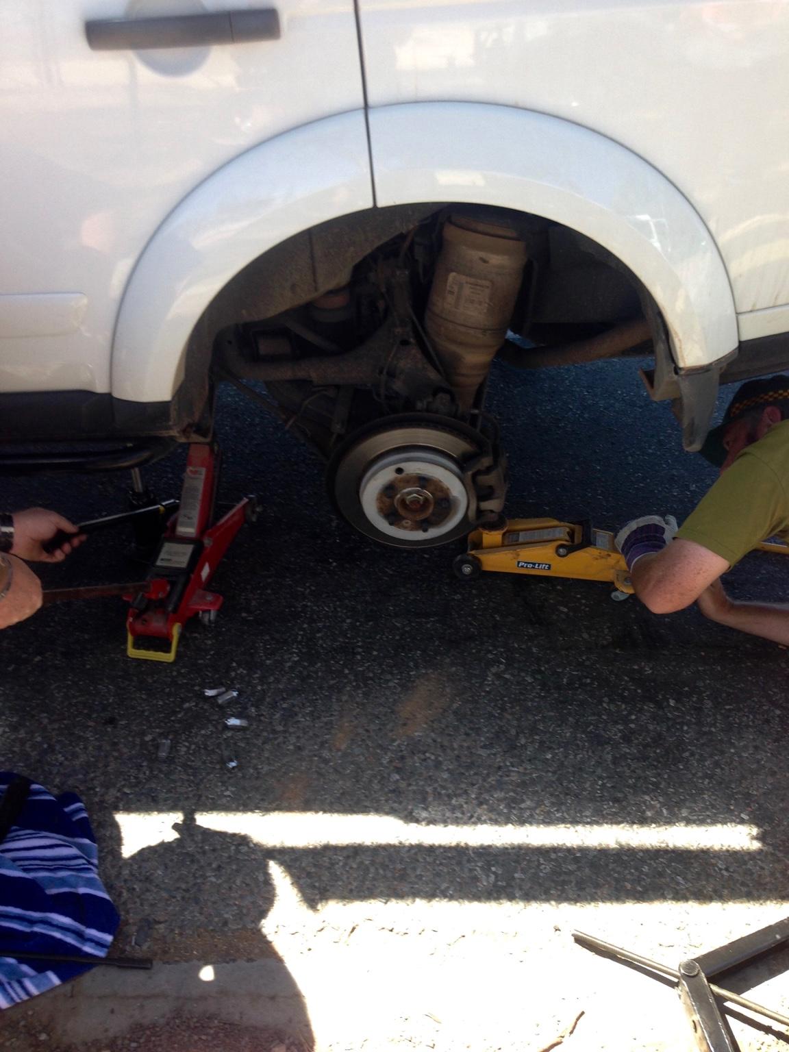 BTW, I carry 2 bottle jacks and a few blocks, breaker bar and torque wrench in a box in the back of the D4.