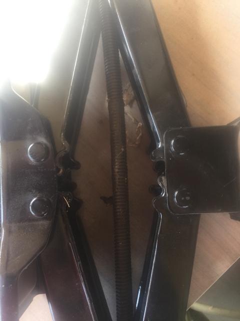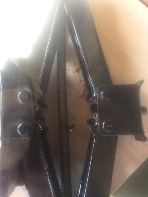 Then, just as it comes off the studs the screw in the jack bends like a banana and the vehicle collapses down.