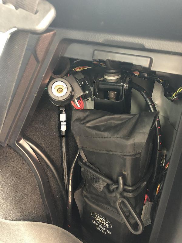 I added a bracket in the cubby with the ARB air outlet and a second switch. This is bolted through the pinchweld seam above the wheel arch. Accessing the hole (which is above the rear muffler) from under the car is a bit fiddly and getting the foam piece that the jack sits in in and out of the cubby is quite painful.