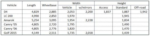 Toyota only quote one "width" specification for their vehicles, which I have assumed is either exclusive of mirrors, or with mirrors folded in. Land Rover and VW quote dimensions with and without mirrors in operating position. I have used the 2015 Golf Mk 7 (earlier models are narrower again). The Amarok dimensions are thrown in there purely for my own interest, as I was visually comparing the size of my young bloke's new one to his D2 and my D4 the other day.