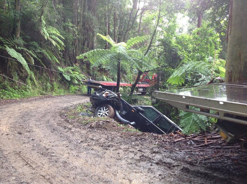 It was a tow truck company at Nambucca Heads arranged by insurance. He needed to go out and assess one day and then come back the next with two trucks to get it out. He sent me some photos (that he took for the insurance company). The bill was high, but covered by insurance.