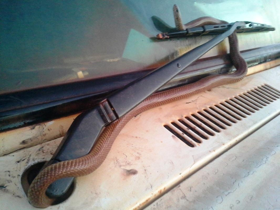 Be careful poking and prodding around inside body panels. You might just have one of these "vindscreen vipers" hiding in there somewhere.