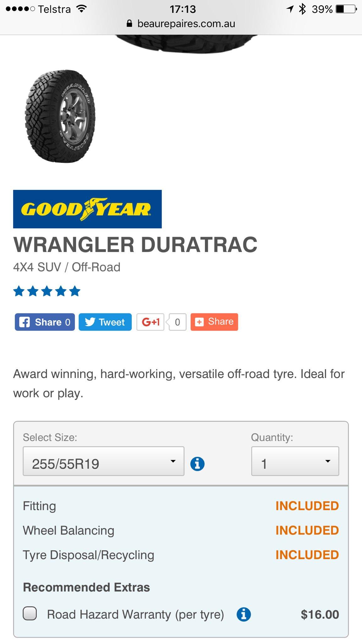 Then, I should decide if I can get LT construction of AT Tyre for either 19" or 20". I haven't seen any yet according to my research, Good Year Wrangler 255/55R19 did not receive good review at product review.com.au.