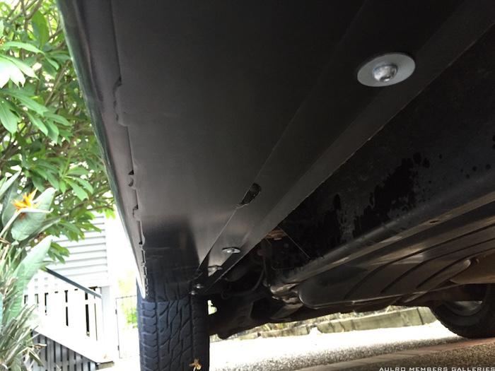 The plate also prevents stones flung up by the outer edges of the front wheels that miss the mud flaps from hitting the rear wheel arch flares.