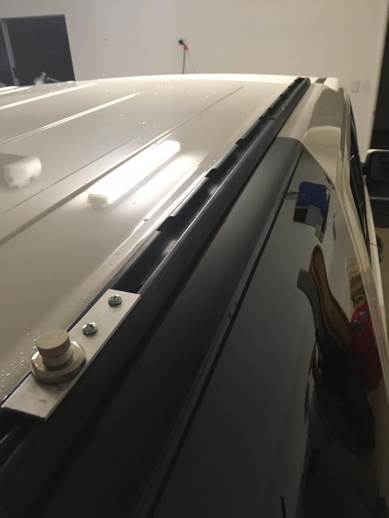 The decision for mounting at the rear, well, I don't have the full length rails, so it would have been above the B pillar more or less, and i didn't really want that half-way look. I was also worried about possible noise/whistling at speed, and so wanted it a bit further away. Mounting at the back also meant the cable runs straight back, then one curve around to head forwards under the rail - in the middle would have needed an 'S curve, with much tighter radius. I liked not having to drill the metal rail too, so no potential rust issues.