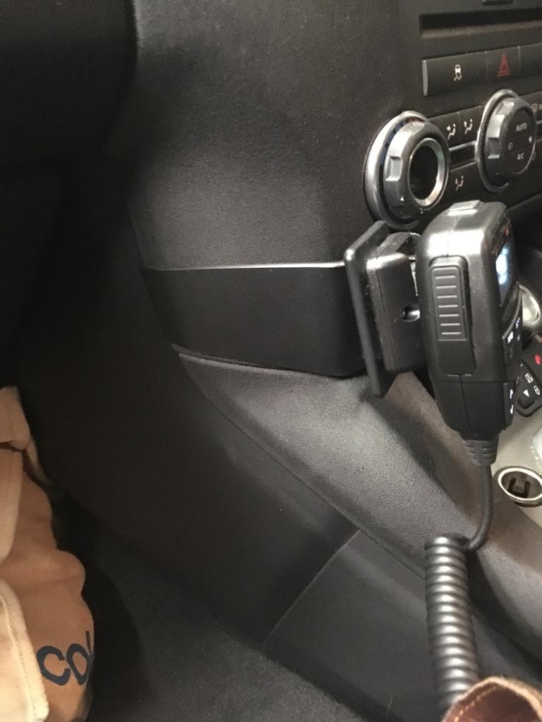 Mounted mine under the lid of the centre console cubby. Fitted a connector to plug the mic into and used antenna mount from Labtronix (Aerial Bracket)
