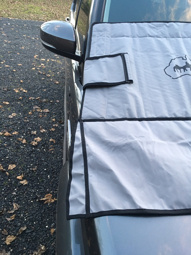 (ii) The door tabs keep the cover in place nicely probably don’t need the wiper blades to hold it. The Drifter standard cover is made of insulation and covered in canvas while the custom extension is just canvas. For better insulation of the cabin just thought it would be good to have the installation section cover the full window. The design is excellent goes in place in a minute.