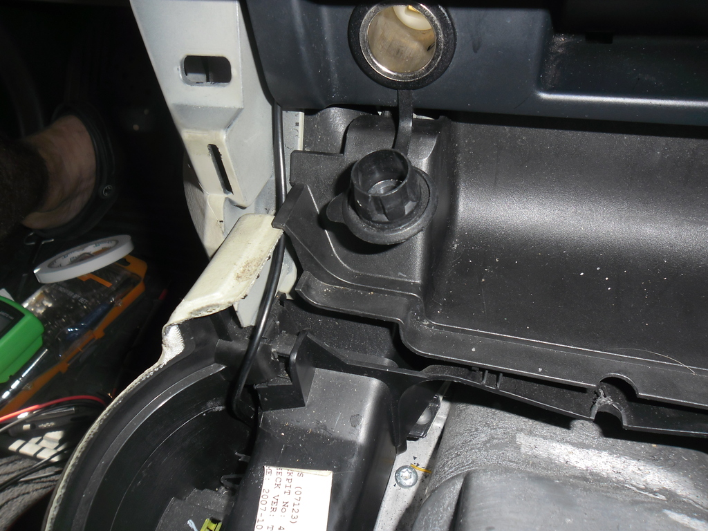 Running the cable up inside the center console under the passenger cup holder. Fiddly! :