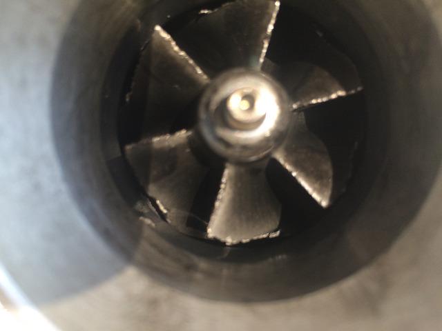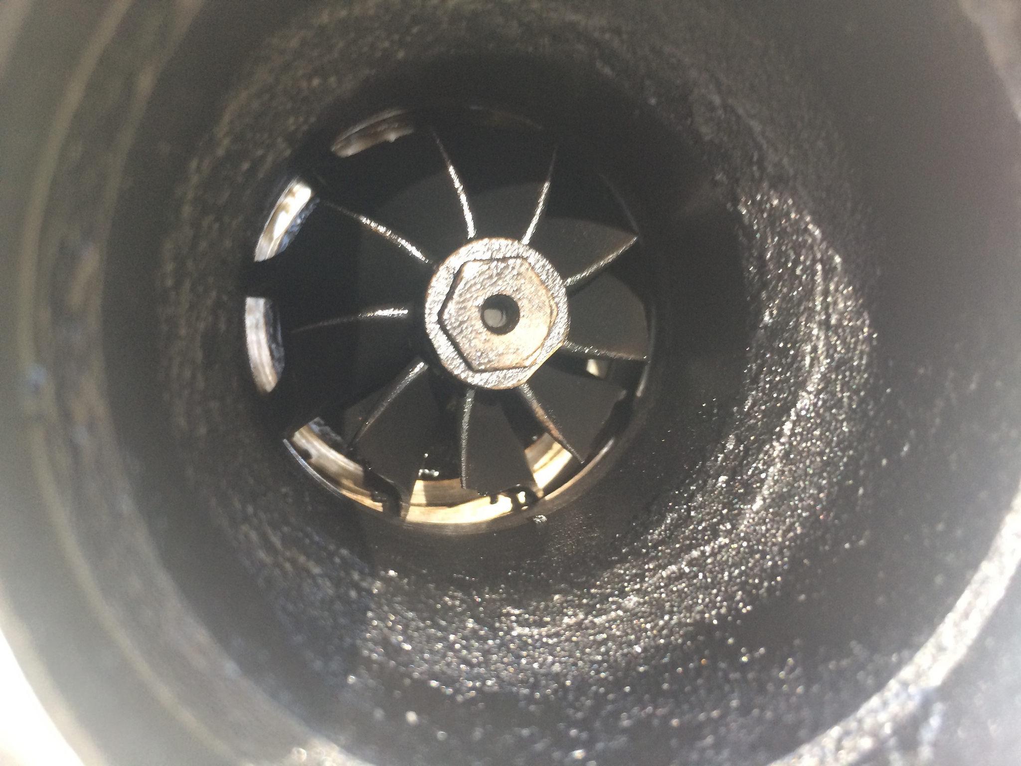 With the turbo out on inspection there was considerable play which had caused fins to rub. You will see in the images below the damage to the fins.