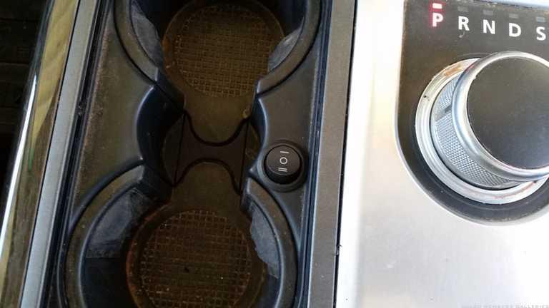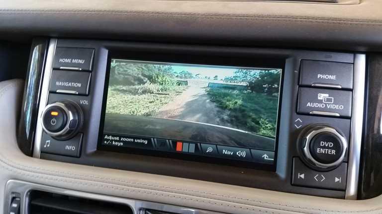 ..... manual selection of the van camera or a camera mounted under the upper tail-gate to be able to see the tow-ball. Manual camera selection is by a small rocker switch mounted in the cup holder. The video feed between the surround camera and the monitor is intercepted using a video switch, allowing the other cameras to be selected instead as required.