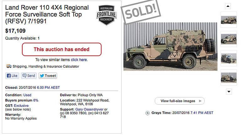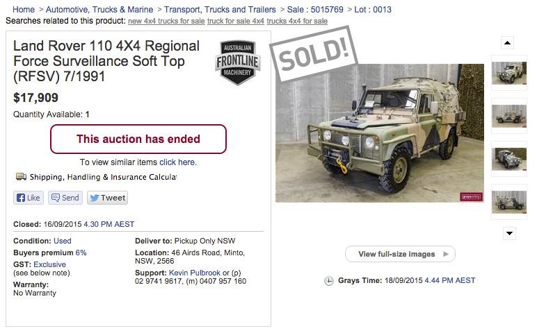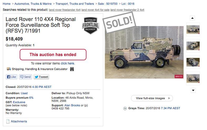Hope this helps samuelwest. The RFSV pictured below sold this week at Minto and would have ended up at around $20 900 by the time you paid the 6% buyers premium plus 10% GST.