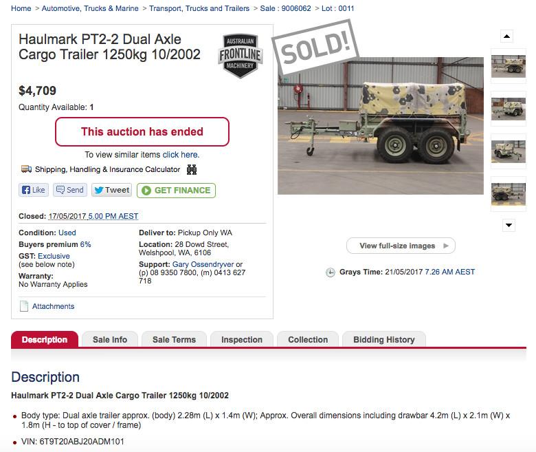 Has anyone seen the frontline listings in Adelaide for a few haulmark and No.5 trailers. Take a look. They were cheap yesterday...bid to get one. They look to be in good nick