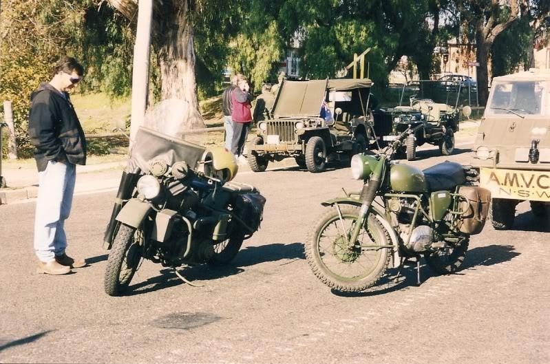 Note exarmy moke in back ground,,,,it has been preserved and one of the B40 BSAs went to the current owner of that moke.