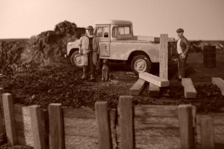 then moving up in scale, another series 3 LWB. Seems farmer Joe doesn't seem too happy to have a chat with the old swaggie when there is heavy work to be done. Which is man's best friend, the swaggie's dog or the farmer's old Landie?