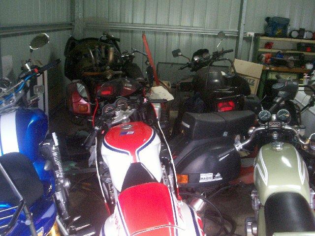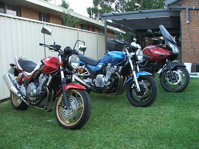 The V-Strom and the XJR (the Honda is his mother's bike)