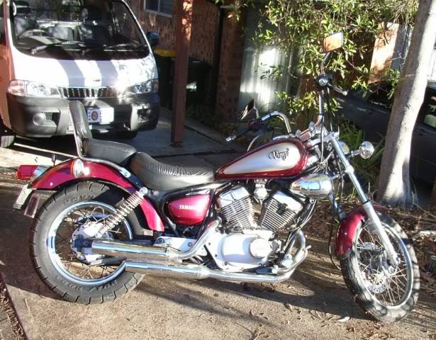 My current rides, yammy V star 350 (3.5L/100kms and cheap rego is the only reason)