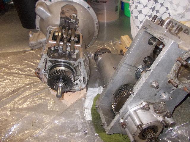 Diana, The one in the background is the one I'm working on with the high speed transfer box (no gearbox number). The one in the foreground is a spare box that might need a new reverse gear, from the PO's description it has a few teeth missing. He thought it might be from a 2A. I've now found a mainshaft gear in Australia for the high speed transfer box so now looking for the next problem..... Colin