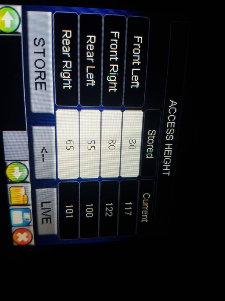 Firstly the problem with the slow dance! First fault was that the parameters was out on both left and right front.cleared fault and had p38 running and it was doing the slow dance .commpreesor run 120psi lift 50mm exhaust air drop 5omm drop to 110 psi and all over again.Eas issues.