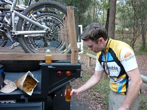 I carry a 2 litre camel back, and 2 bidons of water, with a cold sports drink back in Grover which I chug down with a Protein Powerbar after I finish. The amount of water you'll need is somewhat personal but it does depend on how hot it is. You will **** sweat at this time of year, so you do need to be able to rehydrate. I won't let you die on me thought - I'll share my water if you run out!I drink my 2nd sports drink when I return home and that is courtesy of MR James Squire.