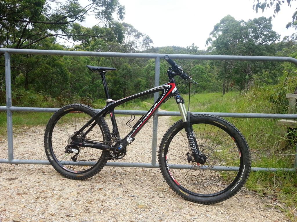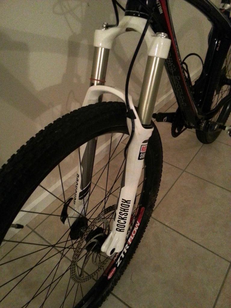 Today I have fitted a set of 2013 Rockshox sid XX's (second hand purchase - just been serviced) in place of the Pikes. Also changed the front hub adaptors down to 15mm. Very nice handlbar lockout as well (rubbish pic alert!)