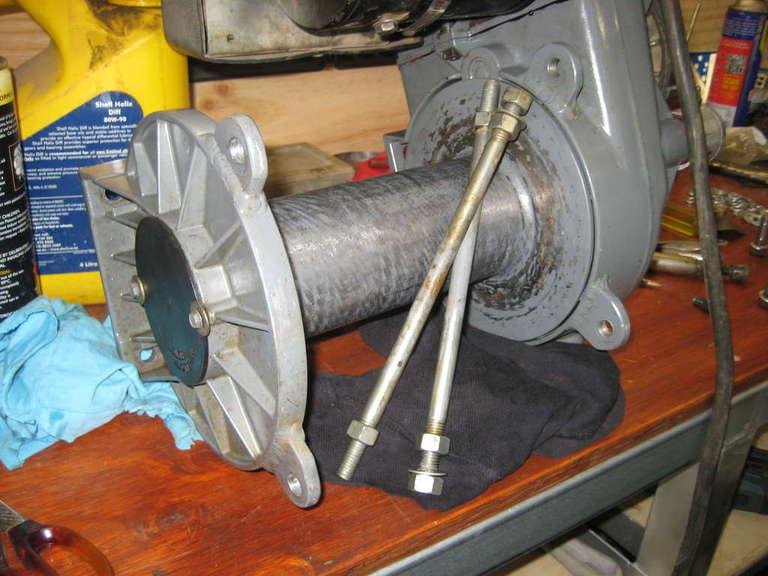 About 10 years ago I modified my hi mount winch to be stronger so copied Mal Leslie's modifications which include welding on 4 ears to attach tie rods on the back, converting to oil lube which includes welding a boss on the bottom for the drain plug and fitting a fill plug, fitting a coulpe of breathers. The oil lube is much better than grease, just takes about a cup of gear oil, easy to change.