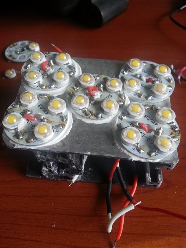 Place as many LED units s you can fit on the aluminum base, make sure to use thermal paste between the LED units and the base.