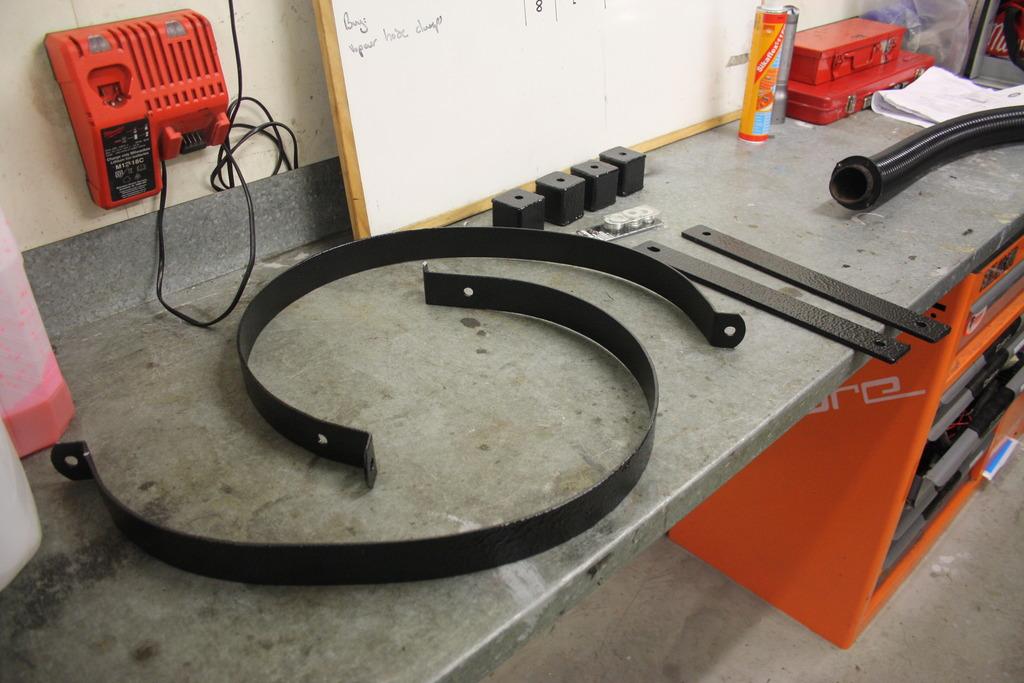The roof rack brackets were rusting and were too high after i removed the stock roof bars. I shortened them by 50mm and hammertone coated them.