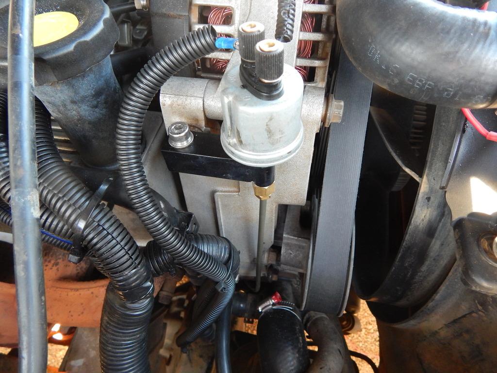 After being warned about how my previous oil pressure line to the sender was routed, i replaced the nylon hose and mounting position i previously employed, with a hard lined, bracketed system. The concern here was that the nylon tube would be fatigued around the olive of the compression fittings.