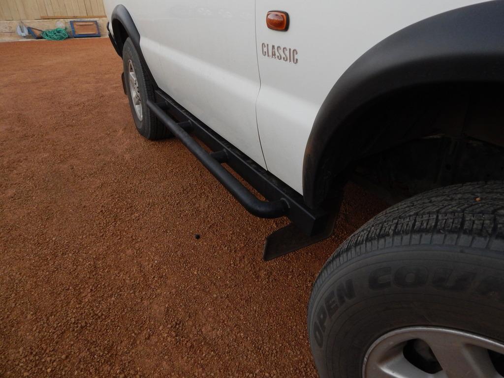 The plan was always to get rid of those ageing ARB side steps. so i custom fabbed some sliders using the arb chassis brackets. they are made of 3mm box section and 3mm wall tubing. enjoy