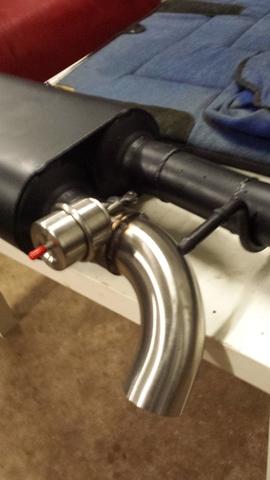 The headman headers have also been installed, it sure feels like the v8 has more capacity to rev now. I have also installed a flow master 80 series 1 into 2 muffler. It replaces the stock centre silencer. one exit goes to the rear of the vehicle (like normal) however the second goes to a 2-1/2 inch stainless steel butterfly valve that exits right under the disco. This valve is vacuum controlled, a vacuum line runs up into the engine bay and meets a solenoid that feeds of the intake manifold. I have a small switch next to the gear shifter that controls the exhaust valve.